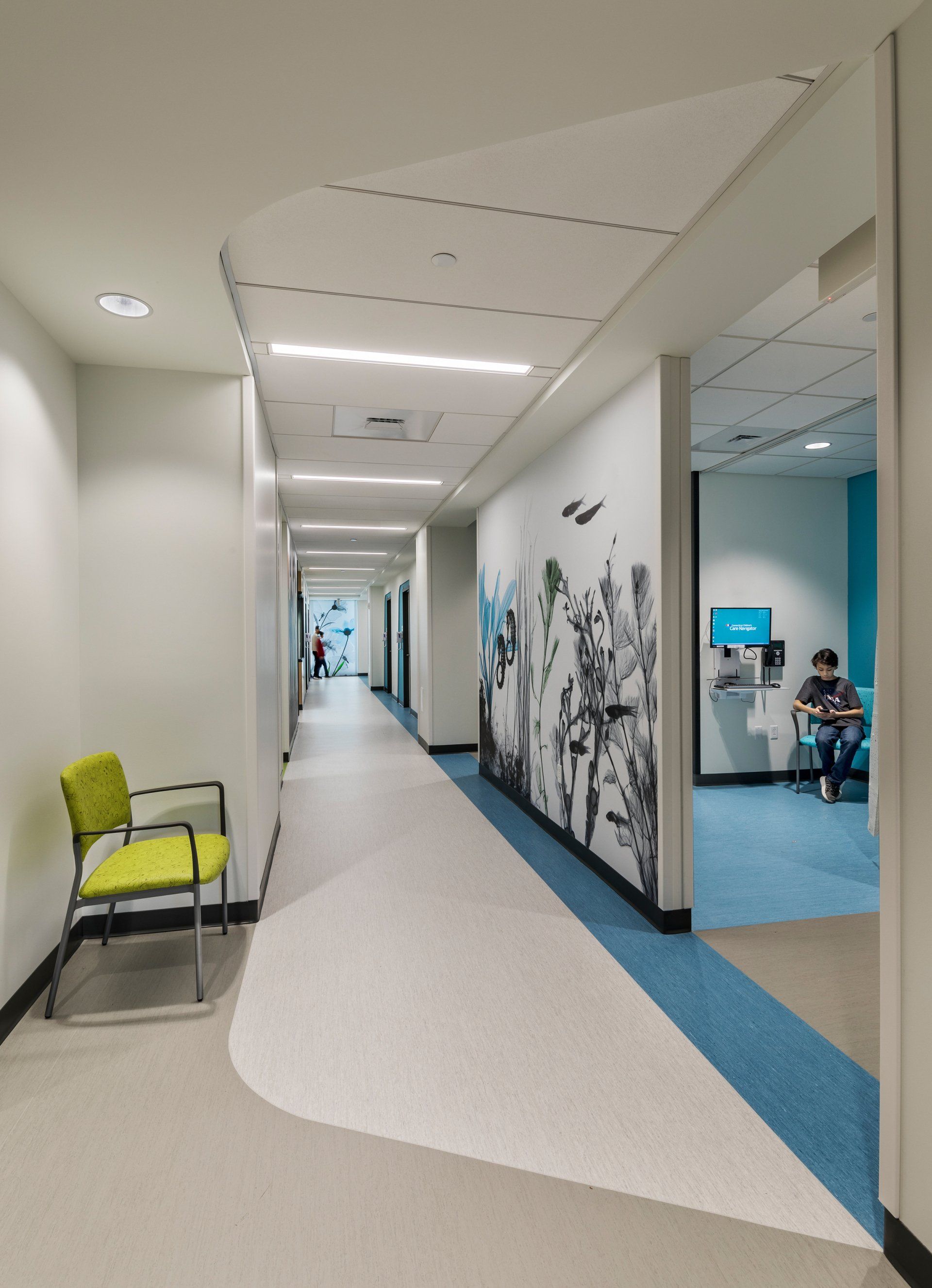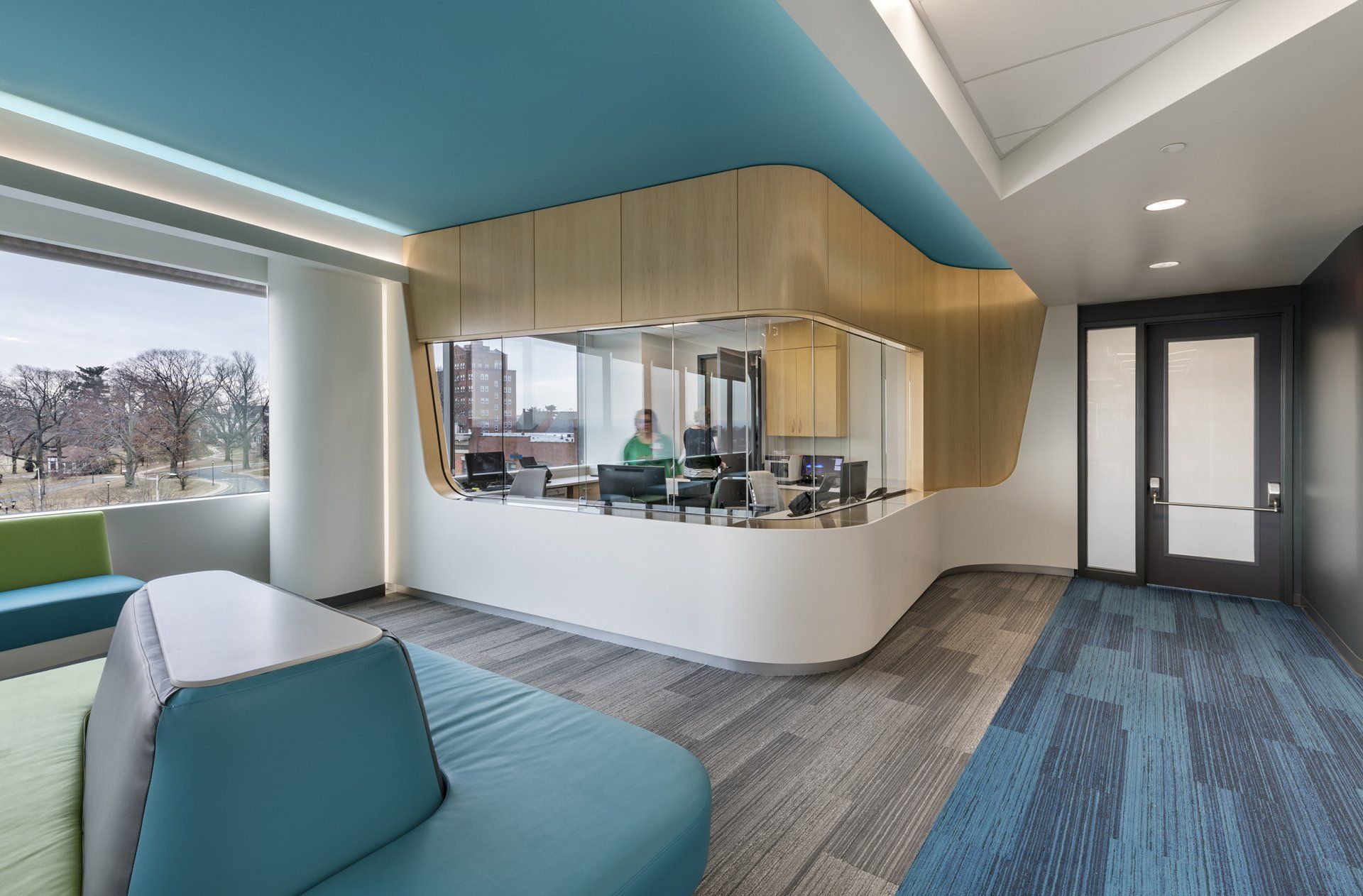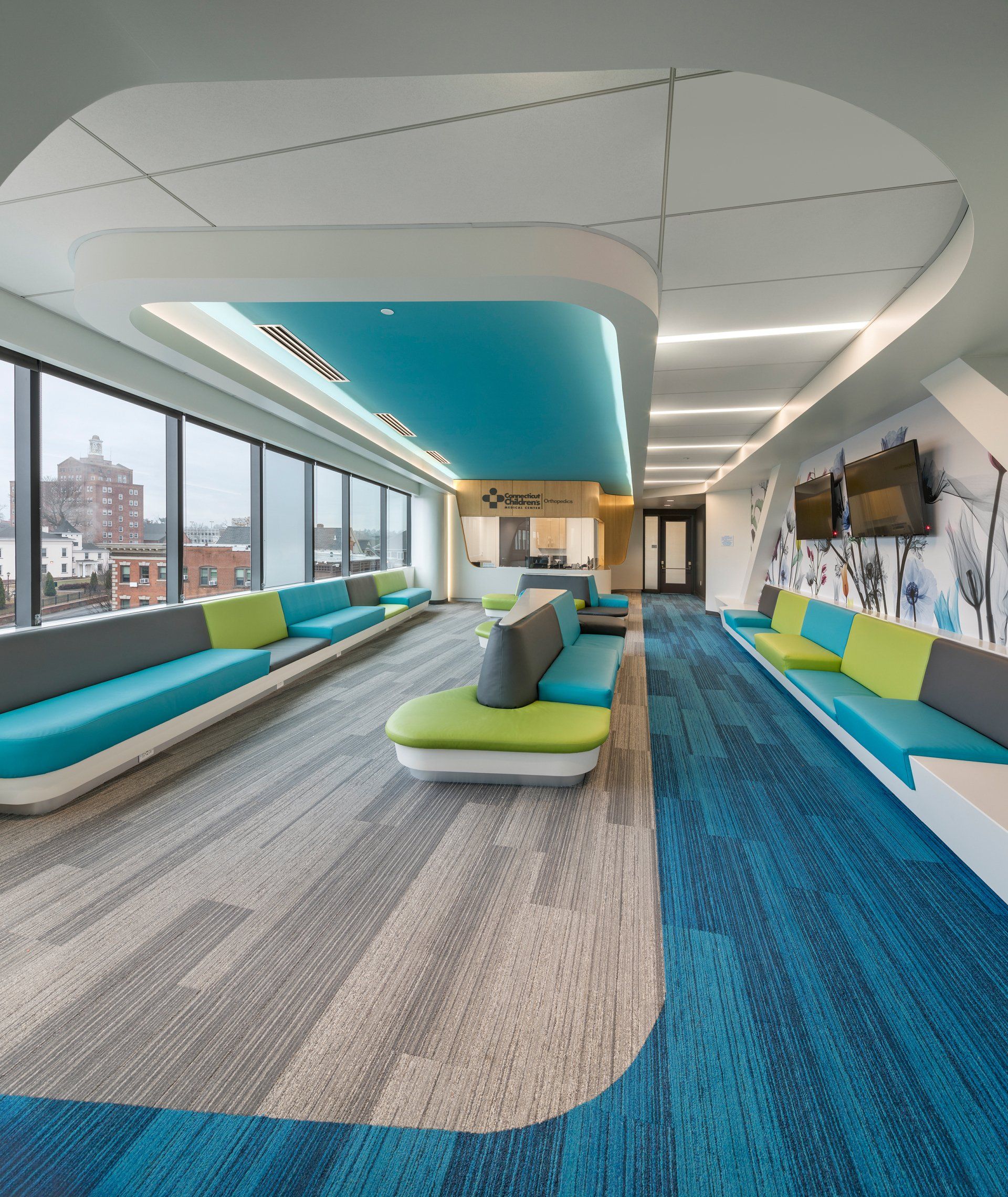 Tecton worked with Connecticut Children’s Medical Center to provide a leading-edge Orthopedic Center on the organization’s main campus. The project involved consolidation of vacant space to support the center’s program, including a Philips Digital Diagnost VS 3.0 and an EOS Imaging SA with a Laser Pole. The facility is one of only seven in the country to feature an EOS imaging system, providing frontal and lateral low-dose radiology images. This technical investment is balanced by a design that harnesses the positive effects of energizing color, soft forms, natural light and biophilic imagery, to create a welcoming and reassuring environment for young patients and their families.