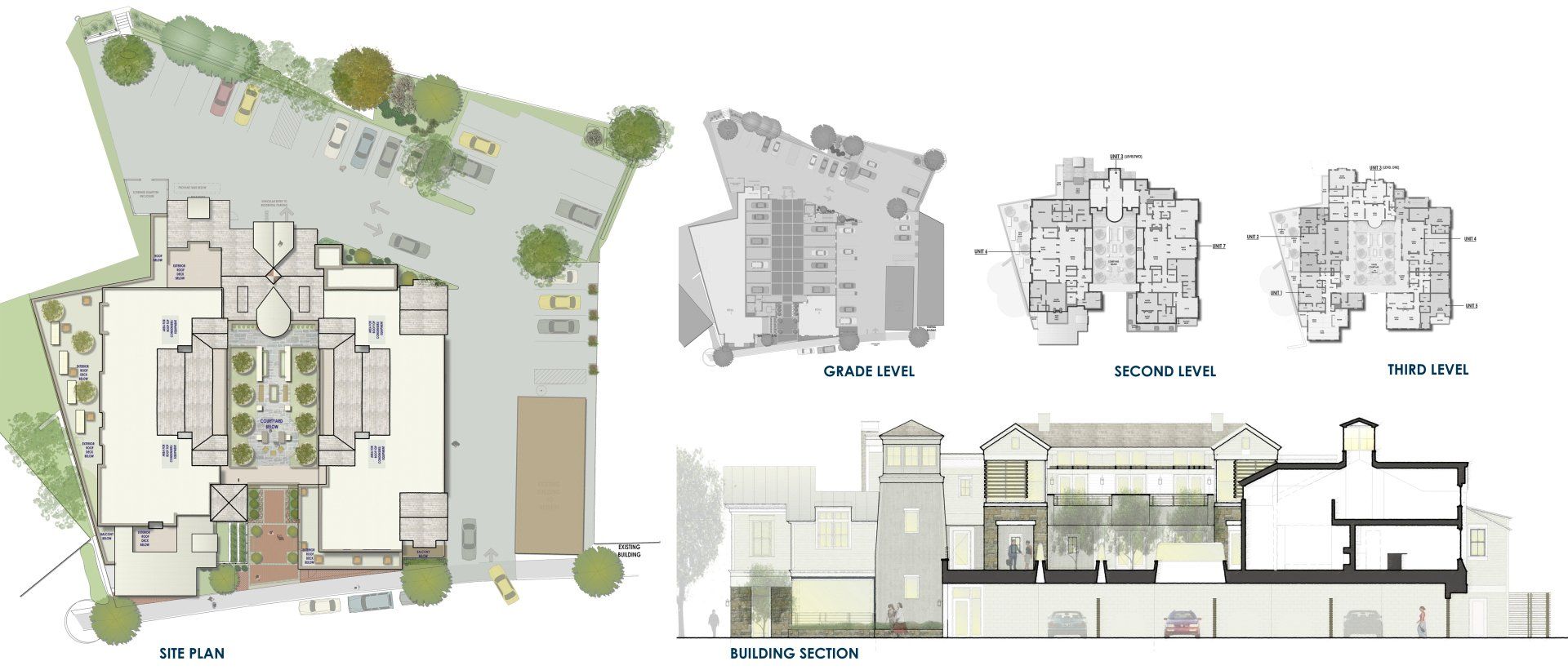 Gatto Development and Tecton Architects collaborated to design Heritage Square, the first “urban living” condominium development in New Canaan, Connecticut. Located on a former vacant property in the heart of the downtown area, the team started with a strategic vision for the dense urban fabric. The completed mixed-use development establishes a presence along Forest Street, with sensitivity to the scale and character of the existing buildings and context. Street-level commercial space is topped by six luxury residential units, offering single-floor living, covered parking, private balconies and high-end finishes.