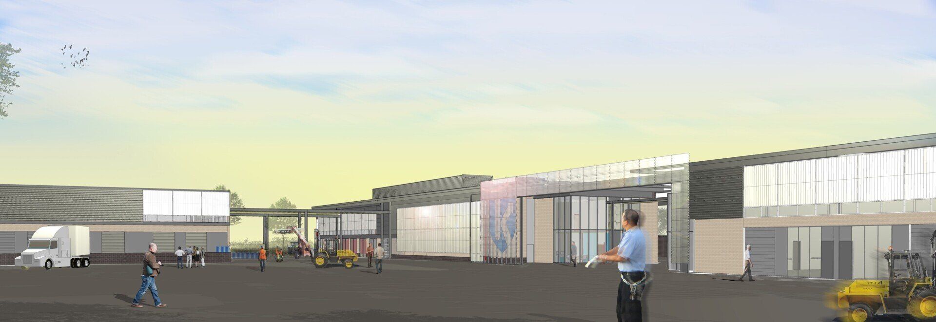 King Industries is a third generation, family-owned manufacturer of volatile Class 1A chemical additives that make the world’s highest quality coatings and lubricants perform under the toughest conditions. Their patented products are specialized and proprietary as are their customers, and their operations are extremely high-risk. The current plant campus in Norwalk, CT is bounded by recent urban residential development – an inherent risk King set-out to alleviate via a gradual but complete relocation for their business and manufacturing operations to an 11-acre brown field site in Waterbury. The phased new campus of 8 buildings includes a bulk chemical tanker offloading building, 4 liquid storage/processing plants, and a liquid warehouse each connected to the campus utility center with an overhead service and communication trellis. The Utility Center is complete and Truck Off-Load and Process #1 are under construction. The final phase will also include a new King Headquarters with visitor center and R&D laboratories.