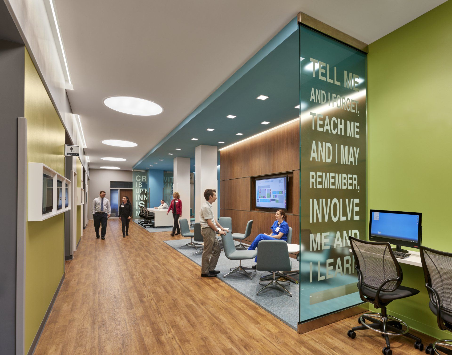The world-renowned Center for Education, Simulation, and Innovation (CESI) is the largest simulation teaching facility in New England. CESI is designed to give students, clinicians, and physicians cutting-edge opportunities in advanced medical education to train and perfect their skills. It is a platform for continued certification and education on the continually evolving procedures and discoveries in the medical field, using life-sized, fully responsive and computerized high-fidelity mannequins that replicate all responses of the human body, as well as wet labs for actual tissue training. Tecton’s award-winning design supports the program’s significant volume of high-tech equipment, considers the educational needs of the medical community, and integrates Hartford HealthCare’s vibrant signature branding.
