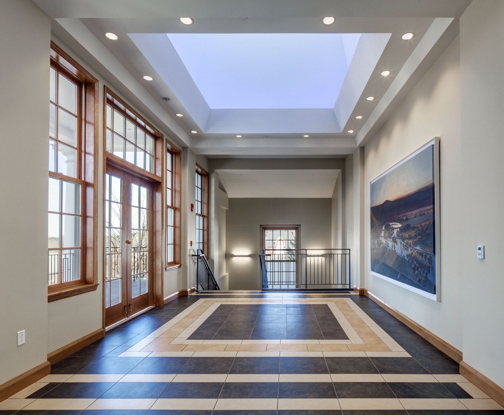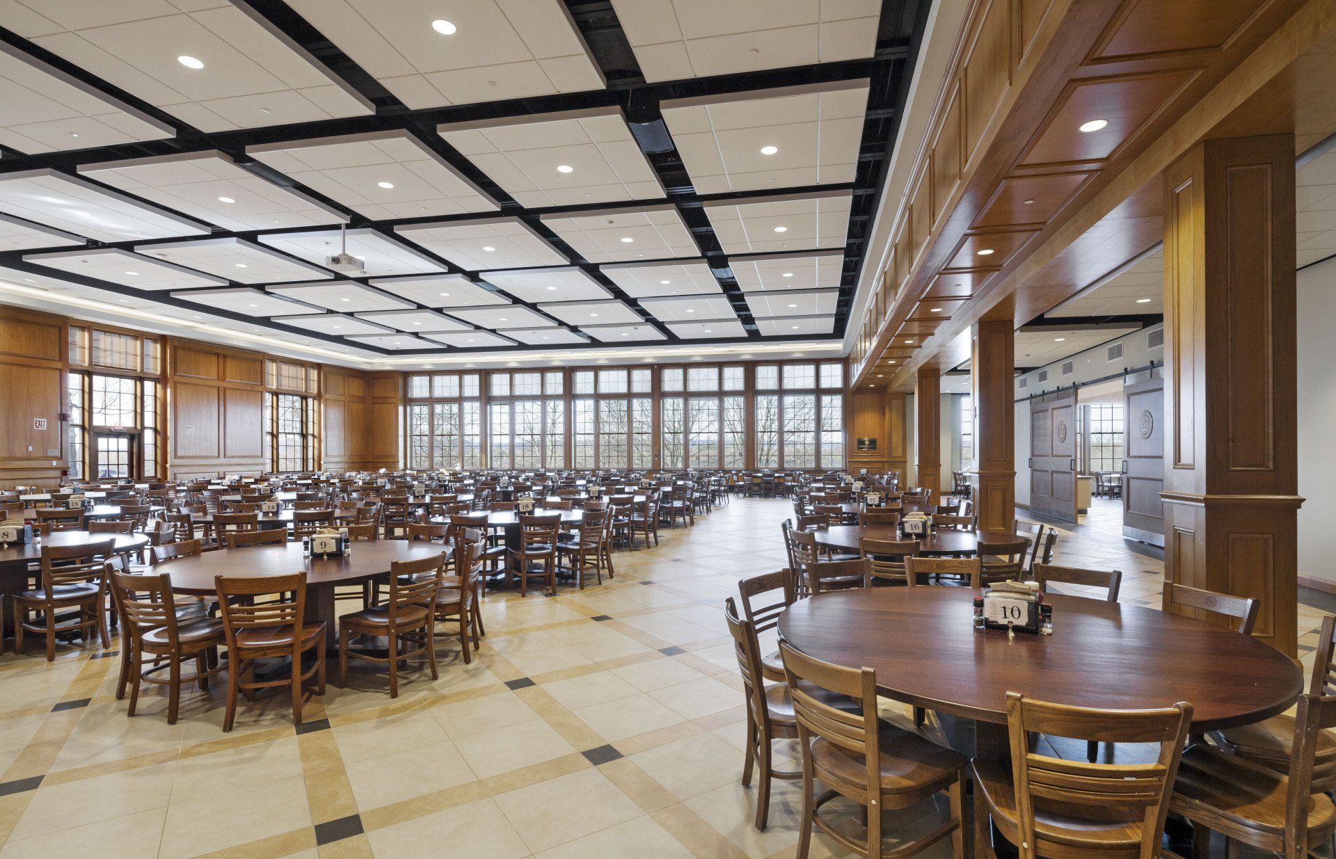 The renovations and additions to Brewster Hall represent much more than the enlargement and re-imagining of the school’s dining facility and student center, the social hubs of the campus. It is the culmination of a long held vision to link the northern, predominately residential precinct of the campus with the southern, academic precinct to create a truly pedestrian, unified campus with Brewster Hall’s new west entrance pavilion as its centerpiece. The completed project provides a fully accessible Brewster Hall which elegantly links the north and south campuses and celebrates Suffield Academy’s signature site and views.