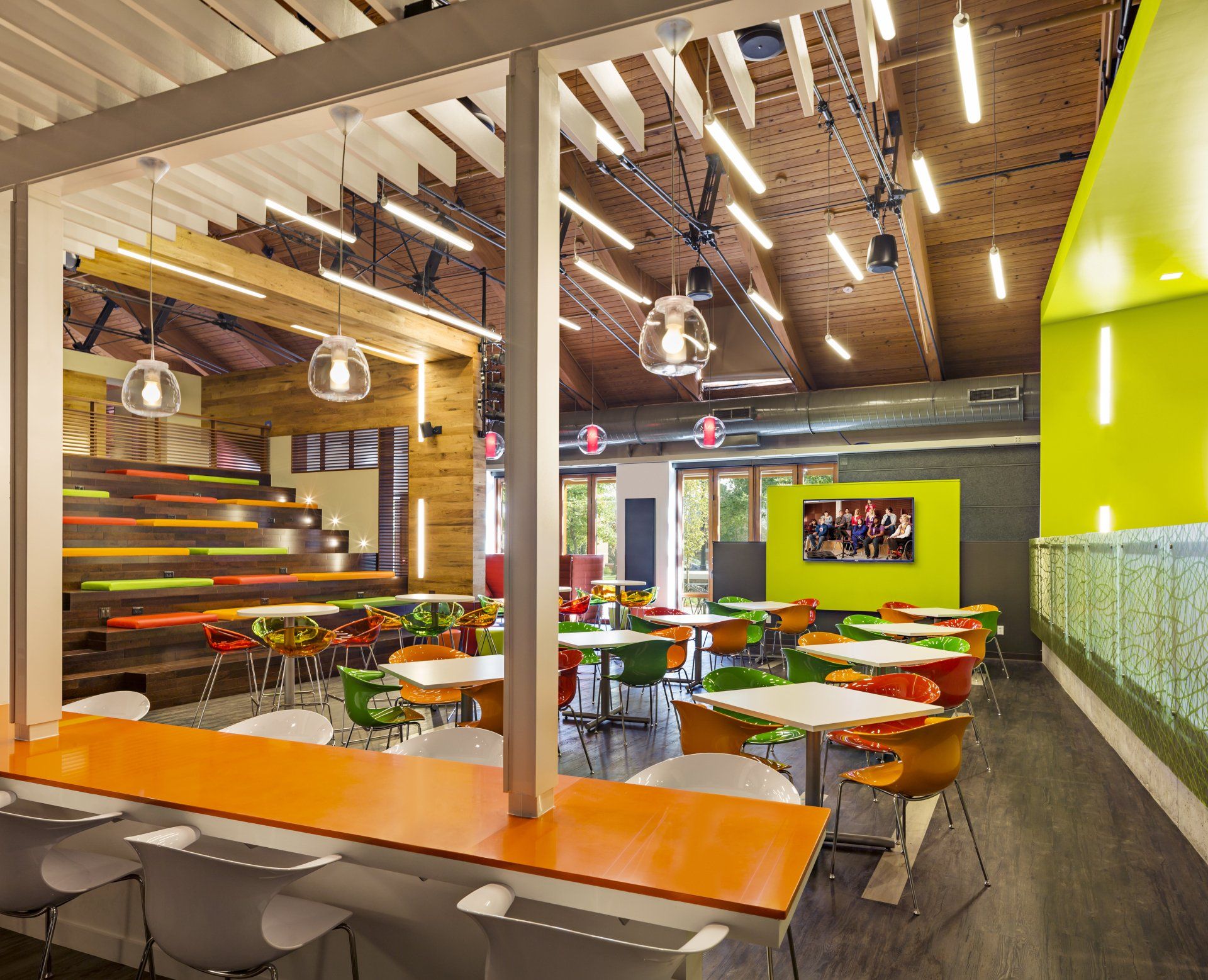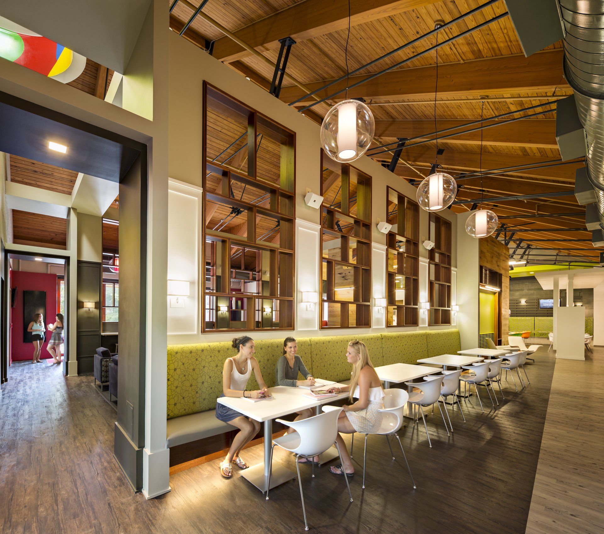 Trinity College identified the need for a unifying space to foster a more robust social atmosphere on campus and tagged an underutilized 7,000 SF building as the ideal spot. An extensive renovation was necessary to divide the open area into smaller hubs, though original features like vaulted wood ceilings and a bright Sol LeWitt mural provided a glimpse of the space’s potential. Tecton engaged trustees, campus administrators, faculty and particularly students in the planning process to develop a space that is truly owned by the Trinity community. This multi-functional space supports a variety of student activities, with options for quiet study, socialization, dining and performance.